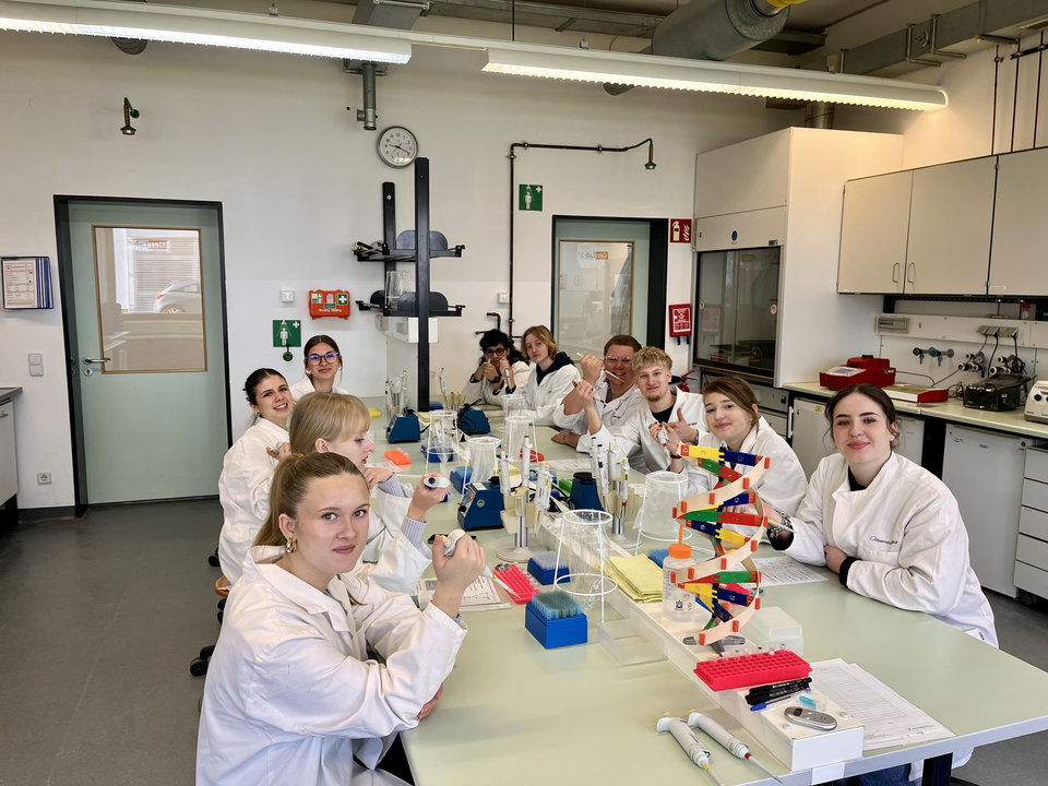 Der Leistungskurs aus dem 12. Jahrgang extrahierte im Bereich Genetik eigene DNA aus Mundschleimhautzellen, führte daraufhin mehrere Polymerasekettenreaktionen (PCR) sowie Gelelektrophoresen durch und machten somit die eigene DNA sichtbar.