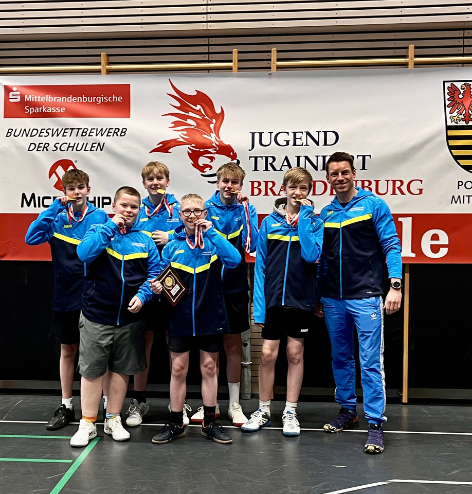Unsere Schulmannschaft der Jungen hat am 11.02.2026 im Tischtennis sensationell das Landesfinale gewonnen. Der Tag begann für die Jungs früh um 8 auf dem Parkplatz des Gymnasiums in Finow. Dann ging es sofort nach Stahnsdorf (in der Nähe von Potsdam), wo um 10 Uhr die Spiele starteten.