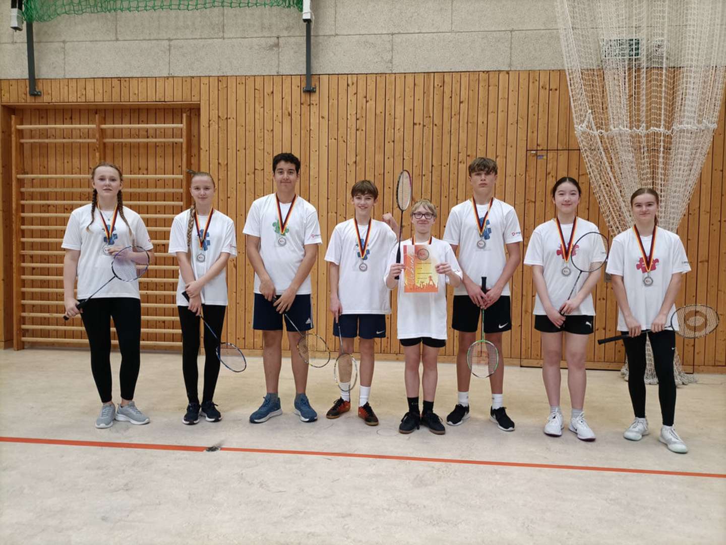 Kurz vor dem Jahresende machte sich unser Badmintonteam auf nach Schwedt zum Regionalfinale. In diesem Jahr nahmen seit längerer Zeit mal wieder vier Schulen daran teil. Spannung war also garantiert. In unserem ersten Spiel ging es gegen die Dreiklang - Schule aus Schwedt. Die Partie verlief recht einseitig und so gewannen wir 7:0. Auch gegen unseren Stadtrivalen, das Humboldt Gymnasium, konnten wir klar mit 7:0 bestehen. Leider (mal wieder ) hielt diese Serie nicht bis zum Ende und so mussten wir im Finalspiel gegen das Gauß – Gymnasium aus Schwedt eine 3:4 Niederlage hinnehmen. Das war mal wieder denkbar knapp, denn das entscheidende Spiel ging mit 19:21 verloren. Wir waren also tatsächlich auf Augenhöhe mit dem großen Favoriten aber das nützt am Ende ja nichts.