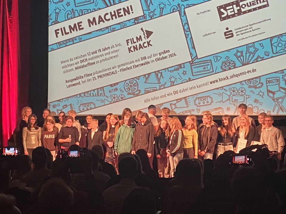 Wie im letzten Jahr sind zwei Filmbeiträge unserer Schüler durch die Jury der „Provinziale“ unter 48 eingereichten Kurzfilmen ausgewählt worden, die mit einigen weiteren ausersehenen Jugendfilmen auf großer Leinwand im „Haus Schwärzetal“ am 12.10.25 anlässlich des 3. Jugendfilmnachmittag des Eberswalder Filmfestivals präsentiert werden durften.